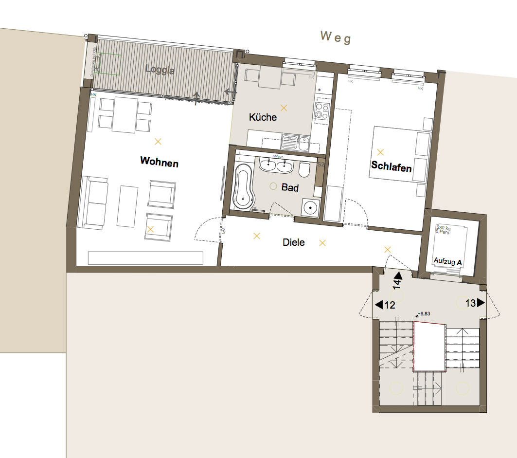 | Loggia | 4,0 m² | NF 8,0 m² |